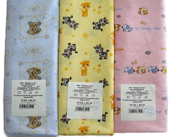 Пеленка детская. Ткань тонкая, легкая, но достаточно прочная, практически не мнется. Расцветки в ассортименте