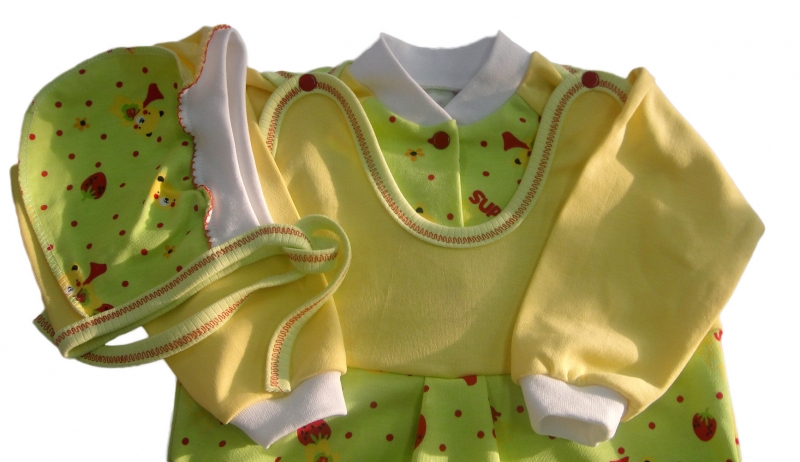 Комплект детский: кофточка, ползунки (высокие), чепчик. Ткань мягкая и нежная, приятна к телу, практически не растягивается и не распускается. Расцветки в ассортименте