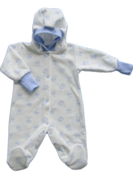 Комбинезон с капюшоном, нежный и бархатистый, не теряет внешнего вида и формы. Расцветки в ассортименте